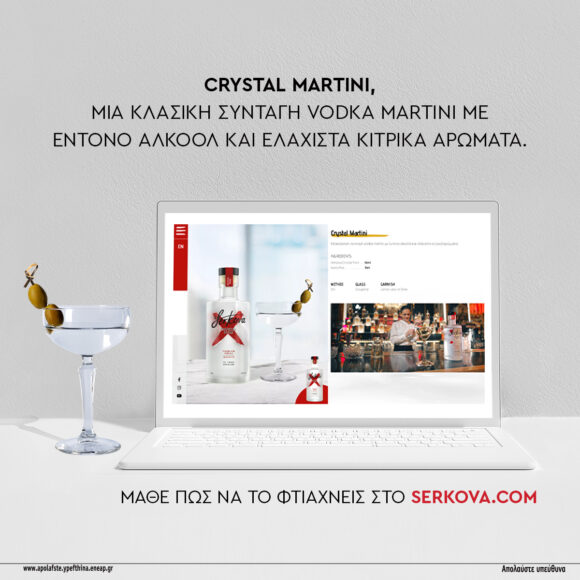 Είτε είστε λάτρεις των κλασσικών, διαχρονικών cocktails είτε αγαπάτε τους περίτεχνους γευστικούς συνδιασμούς, στο νέο site της Serkova θα βρείτε cocktails για κάθε σας προτίμηση. Crystal Fizz, Crystal Martini, Bloody Mary, Negroski Red Pure και άλλα πολλά αγαπημένα Serkova cocktails σας περιμένουν να πειραματιστείτε και να τα απολαύσετε.