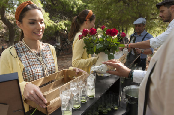 Η ημέρα συνεχίστηκε με τους αγώνες κομψότητας ποδηλάτων στο γραφικό Cine Titania, όπου ο κύκλος των εκδηλώσεων ολοκληρώθηκε με τον πιο απολαυστικά ασυνήθιστο τρόπο: Το Hendrick’s υποδέχτηκε το κοινό, προσφέροντας Gin & Tonics αγγουροσφηνάκια!